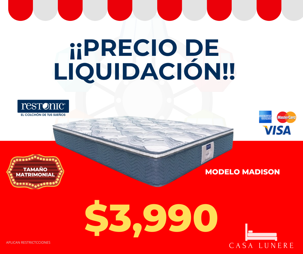 Precio habitual A partir de $ 2,990.00 MXNPrecio habitualPrecio unitario / porColchon Madison Restonic